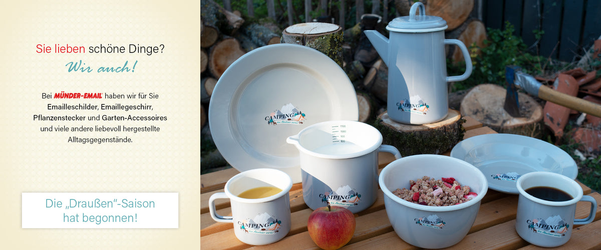 Emaille-Handwerk wie in alten Zeiten: Emailleschilder, Emaillegeschirr und andere Emaille-Produkte von Münder Email