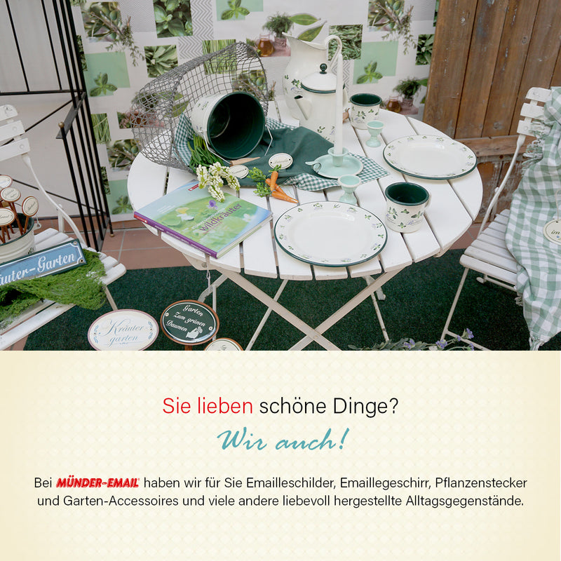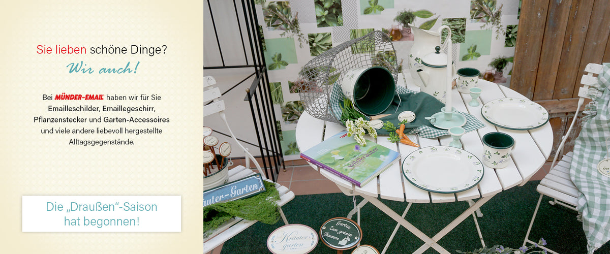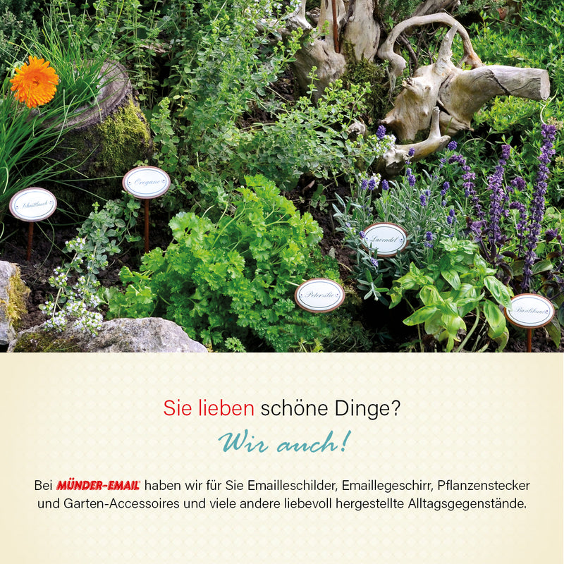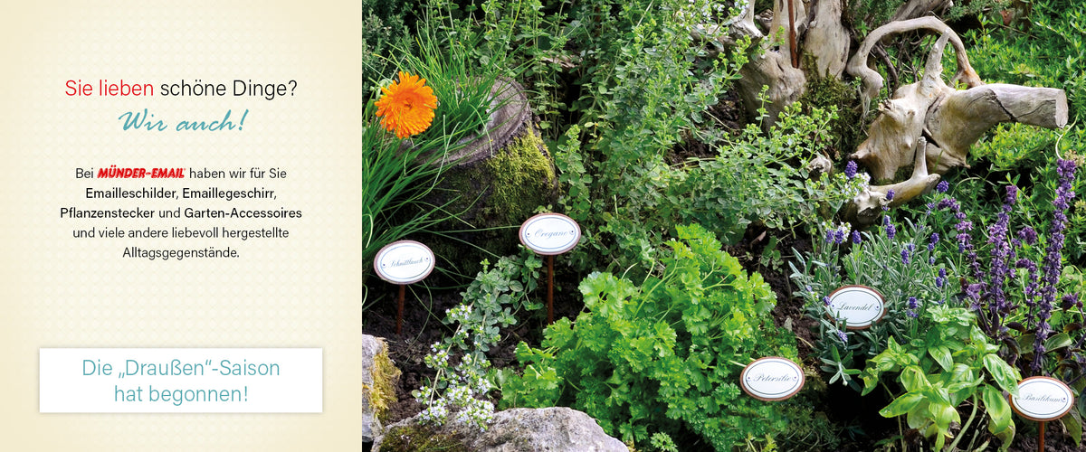 Bei Münder Email haben wir für Sie Emailleschilder, Emaillegeschirr, Pflanzenstecker und Garten-Accessoires und viele andere liebevoll hergestellte Alltagsgegenstände. Als eine der ganz wenigen verbliebenen Emaillewerkstätten in Deutschland sind uns keine Grenzen gesetzt, Ihr Emaille-Wunschprodukt in kleiner oder großer Serie herzustellen.